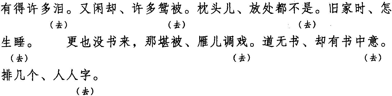 注: 本词例押衣部“衣” 韵。本押古上声 “纸” 韵,古去声 “寘” 韵,因“纸” “寘”在现代韵中属“衣”韵,故全调可押“衣”韵。