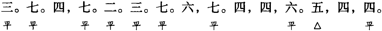 注:本词例押山部“山” “天” 韵。其中,“限” 与“燕” 在现代韵中同为去声,然“燕” 在古韵中属下平声,故“限” 可为下平声,属现代韵阳平;“绊” 与 “翰” 在现代韵中同为去声,然 “翰” 在古韵中属上平声,故“绊” 可为上平声,属现代韵阴平。
