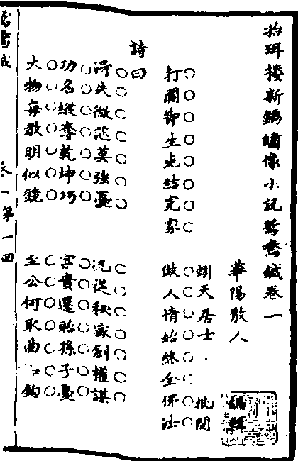清初写刻本《鸳鸯针》目录书影