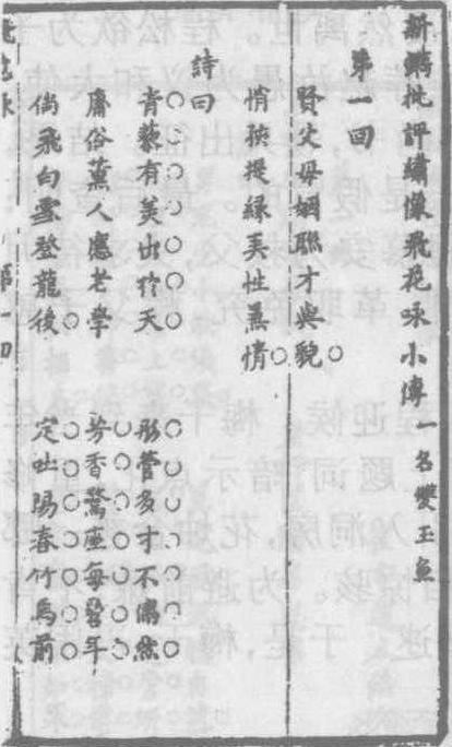 清代白话长篇才子佳人小说。全称《飞花咏小传》,一名《玉双鱼》。十六回。不题撰人。成书于清初。