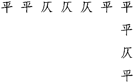 还有一种情况也必须避免。那就是除结尾的平声以外,句中只有一个平声字,这种情况叫“孤平”,也是不允许出现的。比如五言平起平收式“平平仄仄平”,如果第一个平声字不论,变成了仄声,就变成了“仄平仄仄平”;七言的仄起平收式“仄仄平平仄仄平”,如果第三字变成仄声,就成了“仄仄仄平仄仄平”,这就是“孤平”,是不允许的。