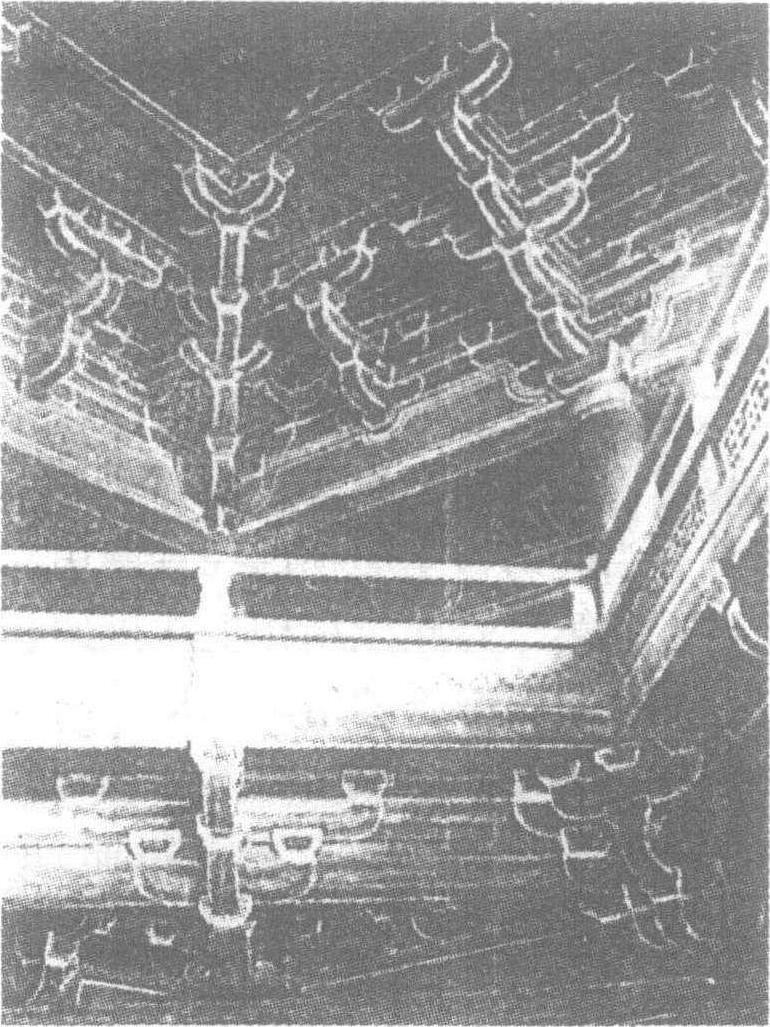 又叫桁梧。古代木构建筑特有的一种悬挑支承结构,主要是为了增强屋梁的负载力。斗拱最初普遍使用于周代至汉代时期的建筑,是把位于柱头栌上的冠板向上弯成曲状,成为山字形横向托架。到魏晋时,为适应建筑规模扩大对悬挑距离的要求,出现了“栌栾”支架。栌栾是一种斗形方块,所以称为斗,栾是形成的曲木,所以叫作拱。另外配上昂、枋等部件,交错组合为一组空间力系组织。它的基本型制是用栌来固定垂直交叉的直横两拱,直拱以上有斜杆昂起,均前后挑出,两侧分别安置小斗来承受横拱,而每个横拱的两头又安置小斗来承接横枋,如此层层垫托,向四周伸张,成为一组斗拱。斗拱一般安置在房屋的内檐和外檐,不仅成为一种独立的托架,而且造型美观,经常被釉成彩色,具有装饰的功能。