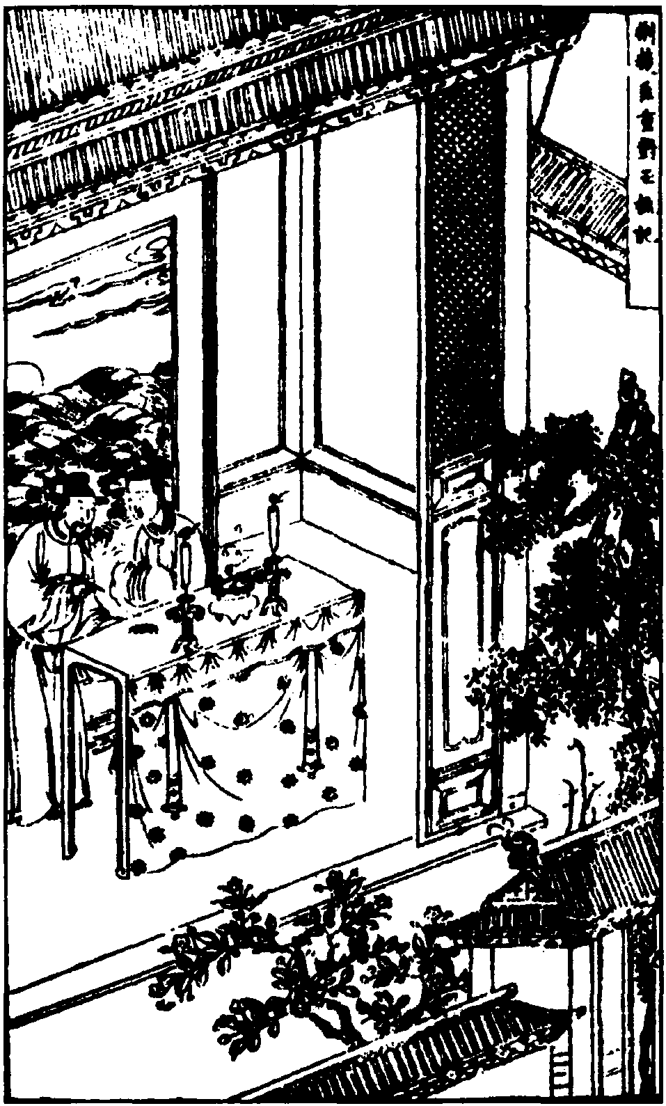 顾玉香一上场,就说明荆楚臣被虔婆赶走,荆因廉耻所拘,不肯上门,故玉香着怜儿去寻他。等候中,玉香唱 [点绛唇]、[混江龙] 曲,她感叹妓院营生 (“风月家门” 指妓院),没有资本,靠的是送旧迎新、卖笑求食。妓女们倚仗着能说会道,用迷惑人的手段 ( “野狐涎”,据宋曾敏行 《独醒杂志》 载,用大腹小口瓶盛肉埋于野外,狐狸见了想吃而嘴不得入,馋涎流滴瓶内,浸入肉中,取肉晒干,人吃了会迷惑而生幻影),使嫖客们服服贴贴、魂不守舍 ( “子弟”、“郎君” 皆指嫖客)。柳眉星眼、皓齿朱唇是她们勾人心魄的武器。无论是读书人、商人、官吏,还是和睦的兄弟、孝顺的儿子,只要勾搭上妓女,没有不忘其本业、本职或失其本性的。玉香痛心地把妓女说成是“败人家油鬏髻太岁, 送人命粉脸脑凶神”。 “鬏髻” 为妇女头上套网的假发;“太岁” 是木星的别称,术数家以太岁所在为凶方,俗因以喻凶恶的人。“油鬏髻太岁” 意为女恶人。 “粉脸脑凶神” 为涂脂抹粉的凶神。二对句互为补充地、无情地揭下了妓女们美丽的画皮,露出其狰狞的面目。