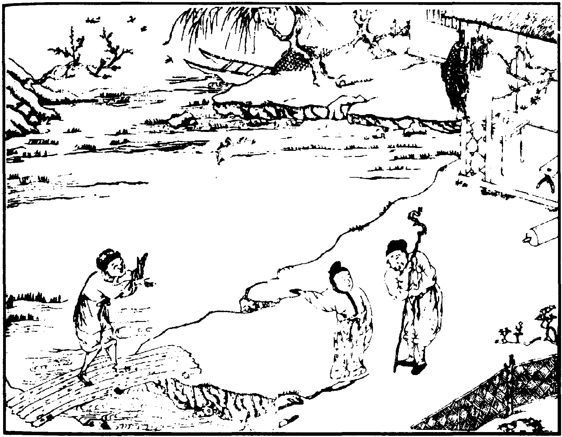 (白) 爷爷好笑哩。一个人儿将几扇门儿,做一个小小的人家儿。一片绸帛儿,妆着一个人。线儿提着木头雕的小人儿。