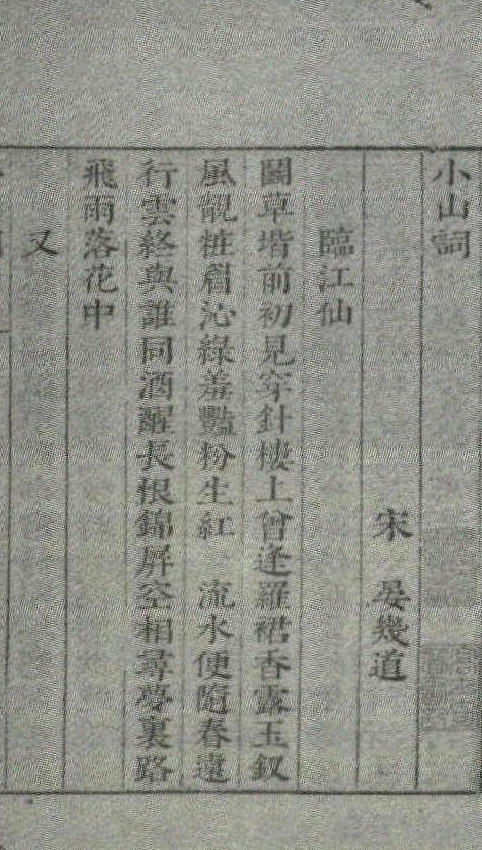 明虞山毛氏汲古阁刊宋六十家词本《小山词》书影