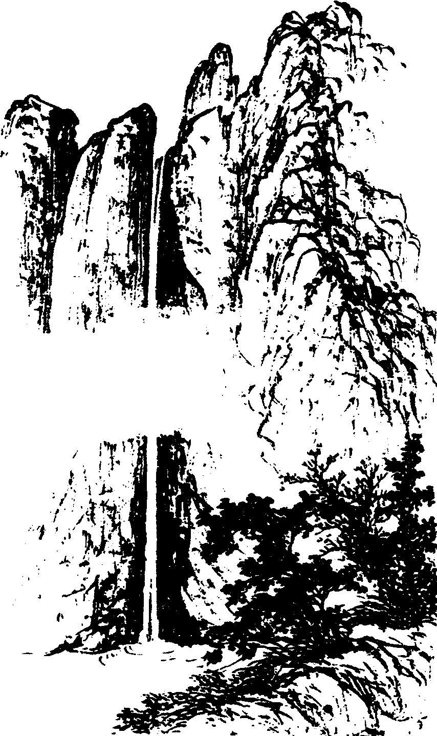 下面又从不同的角度加以分写。“冰丝带雨悬霄汉,几千年晒未干。”直承“高垂”二字,进行夸张已极的刻画。“露华凉人怯衣单”,写瀑布给人之“寒”意。“露华”,露水,指瀑布飞溅之水花; “华”即“花”。“凉”再次点明“寒”; “怯”则暗暗扣着“练”; “人”当然指自己而言。更用“似白虹饮涧,玉龙下山,晴雪飞滩”,将“石壁”、“雪练”再作淋漓尽致的刻画,一连打了三个比方,多方面、多角度、多形态地进行描写和衬托,终使瀑布本相毕现。有人称道作者是曲家之李白,如果单从雄奇豪迈的浪漫主义色彩来看,确实有点相象;但在表现手法方面,乔吉却终究不失曲家之本色。