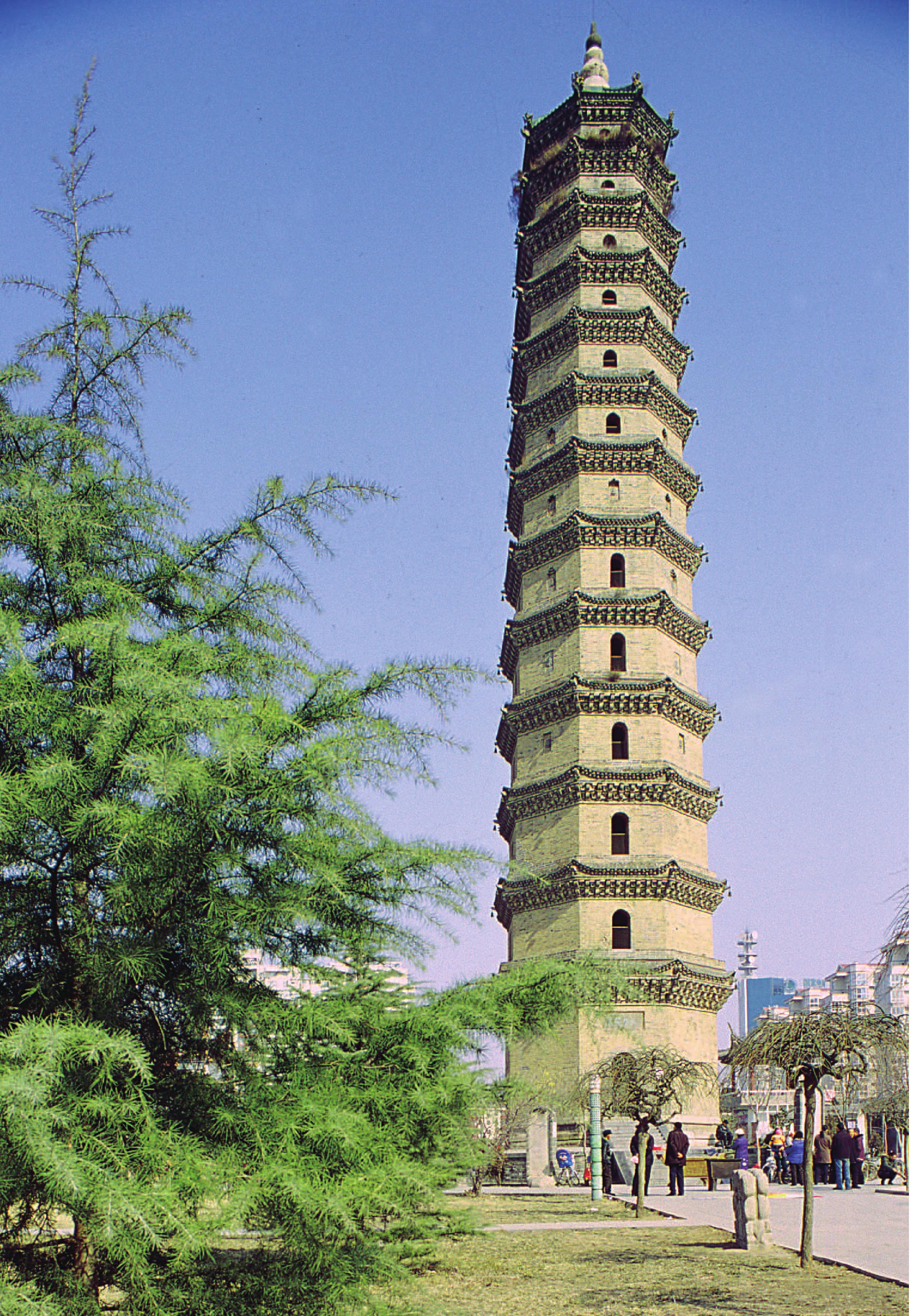 塔内结构亦分十三层,与外檐分层相同。壁体内砌筑砖石梯道,盘旋而上可至塔顶层。塔心室的藻井采用叠涩砖层、菱角牙子砖和砖制小栱头相间砌筑的方法,显得优美华丽,在河南现存楼阁式砖塔中甚为少见,独具地方特色。