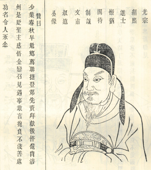 【人物简介:宋代大臣,绍熙元年进士。历官国子学录、涪州通判、工部郎、袁州知府、太常少卿、礼部尚书、徽猷阁待制。像取自1916修《江苏曹氏宗谱》。】