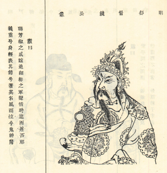 【人物简介:明末武职官吏。仕至都督兼东宫侍卫,京师破,与母妻一门俱缢死。烈后兄。像取自清代修《浙江余姚余邑周氏宗谱》。】