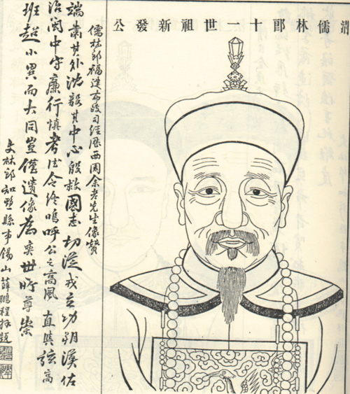 【人物简介:清代官吏。初从事蒙俄茶叶贸易,熟谙蒙俄语言,后投营作向导,功授理藩院副使、福建布政使经历。像取自1917年修《安徽古黟环山余氏宗谱》。】