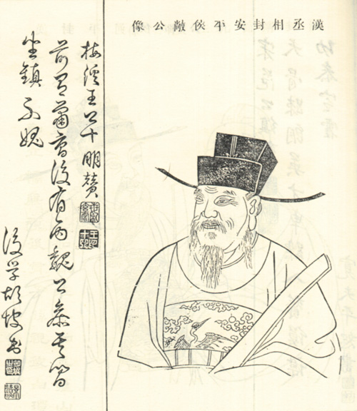 【人物简介:西汉大臣。历官霍光军司马、大司农、御史大夫,昭帝元凤六年为丞相,封安平侯。像取自清乾隆修《浙江余姚杨氏宗谱》。】