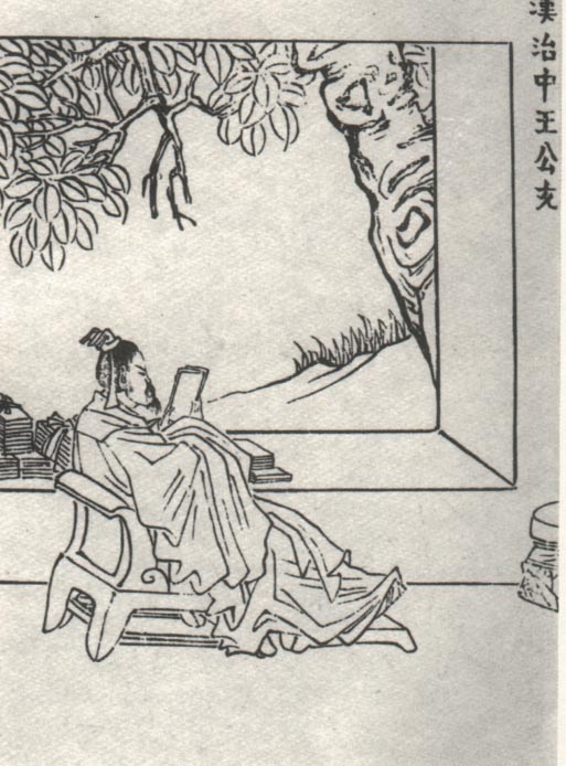 【人物简介:东汉哲学家。出身细族孤门。早年受业太学,师事班彪。好博览而不守章句。家贫无书,游洛阳书肆,阅所卖书,辄能诵忆,遂通百家之言。刺史辟为从事,转治中。勤于著述,著《论衡》八十五篇。王充像取自清任熊绘图,王龄撰赞,蔡照初雕版,清咸丰六年萧山王氏养和堂刻本《於越先贤像传赞》。】