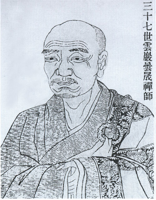 【人物简介:唐代高僧。生有自然胎衣若僧服,遂出家于石门,后住澧阳云岩寺。昙晟像取自虚云和尚重辑,1935年刊本《佛祖道影》。】