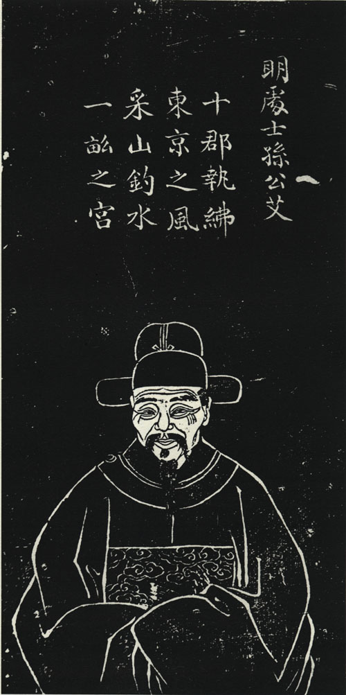 【人物简介:明代处士。好学任侠,尝凿虞山阳崖为泉,结庐以待游者,有《西川集》。孙艾石刻像刻于1827(清道光七年),清孔继尧绘,石蕴玉正书赞,谭松坡镌,为《沧浪亭五百名贤像》之一。像取自清代顾沅辑,道光九年刻本《吴郡名贤图传赞》,清孔继尧绘。】