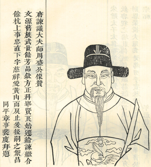 【人物简介:唐代官吏。贤良方正。历仕翰林、给事中、谏议大夫、余杭令。像取自清光绪修《浙江余姚盛氏宗谱》。】
