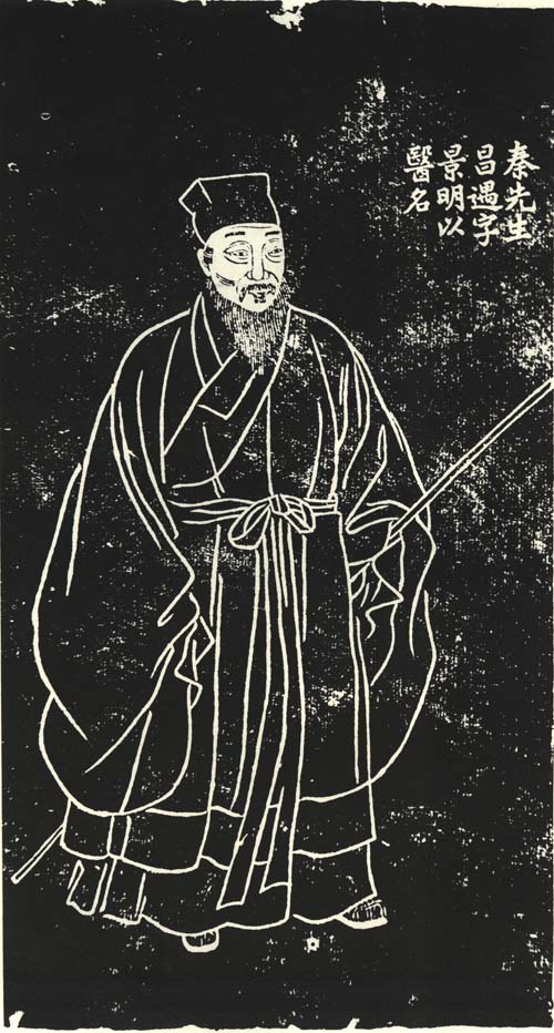 【人物简介:明代天启间名医。少时多病,乃学医,无所师承而遍通方脉,尤长于儿科,年六十余卒。有《大方幼科》、《痘症折衷》。秦昌遇石刻像取自清光绪十七年(1891)徐璋绘并正书誌,朱少渔刻,席云山镌《松江邦彦图》。】