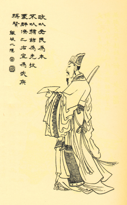 【人物简介:三国蜀汉大臣,累官丞相长史、尚书令、大将军、录尚书事、大司马。题跋像取自清光绪庚寅冬月广百宋斋校印《图像三国志》。】