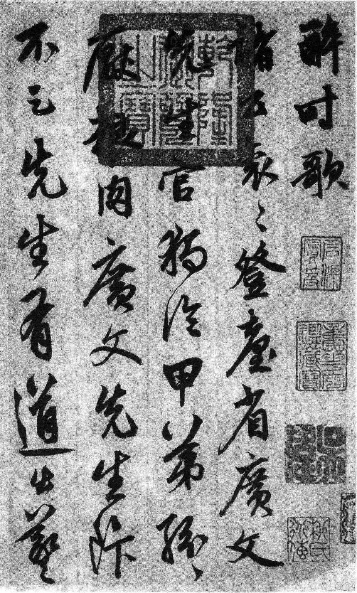 鲜于枢的草书之所以能取得较高的成就,和他的胆识不可分割。他胆大,放得开,加以悬腕写字,以全身之力送之笔端,笔力便分外劲健。怪不得有人看到他悬腕作的大字,向他请教经验时,他闭上眼睛伸出手臂,连说三字: “胆!胆!胆!”