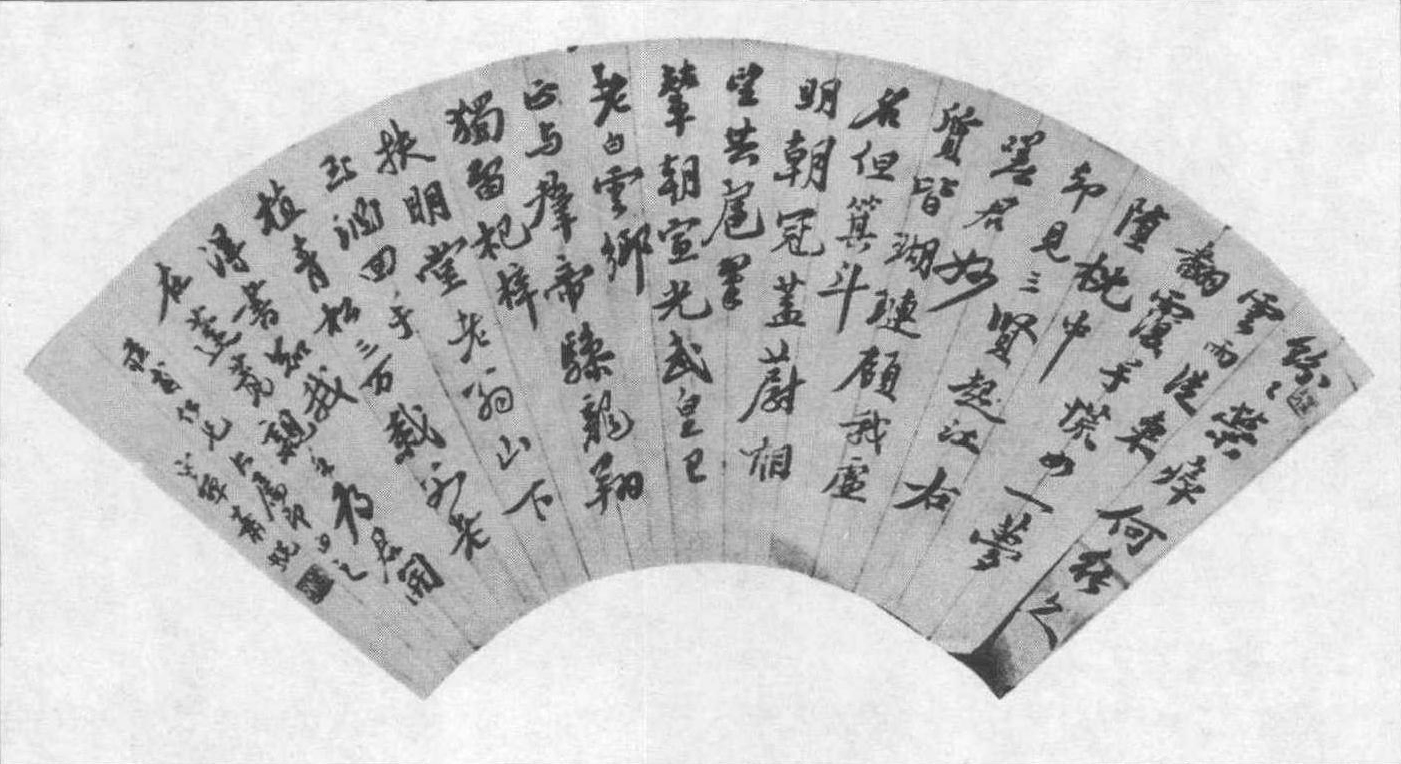 篆书是萧蜕最擅长的。他上窥周、秦、汉金石遗文,折中于《石鼓》,融大小二篆于一体,近学邓石如、吴昌硕、赵之谦等人的篆书而力图加以改造,自立面目。他认为:“篆书贵圆转自如,贵柔中有刚,必须写得方,写得扁,方是好手。”他写字除了做到这些外,还注重疏密对比,多有出人意料之处。这些都在他的扇面上有所体现。但他的书法的弊病也很明显,即缺乏古拙苍劲、质朴浑厚的内涵。对于这一点,他有自知之明: “笺庄代鬻余字,多用洒金之笺,以投俗客之好,墨色须丰润,务去老劲荒率之举,焉能高古? ”这是卖字把字卖俗了的典型。此外,他奉佛后消极遁世,心灰意冷,学问随之荒搁,也是造成他书法甜俗的重要原因。