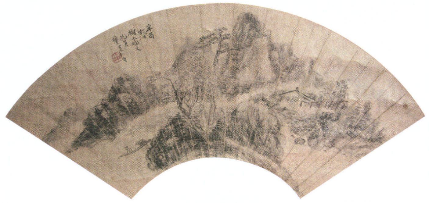 二是《山水扇面》 (图58)。此画为1921年黄宾虹56岁时所画,依然带有新安派画风,为松灵、秀雅的“疏体宾虹”小品。