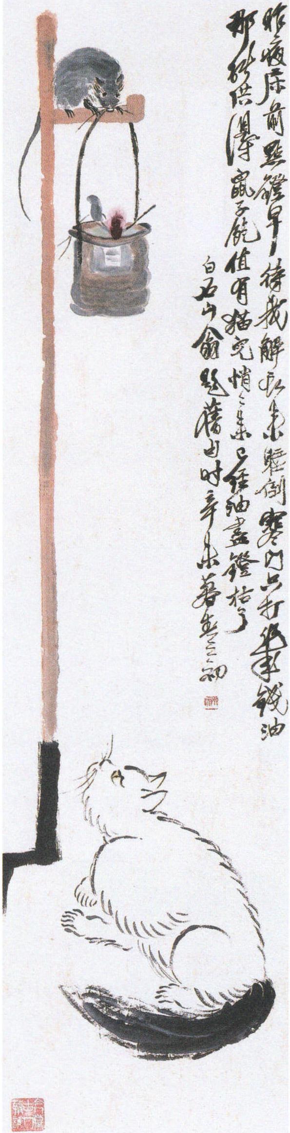 图37 齐白石1931年作 《灯鼠戏猫图》