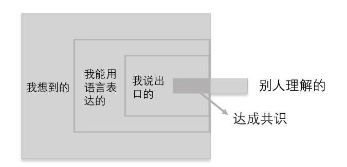 图8-1充分表达了偏差产生的原因。很多时候,你想到的内容很多,但由于语言表达能力和媒介传播时损失的内容,你实际上根本无法100%表达出内心所想。对方其实也有同样的问题,无法100%地表达他的想法。并且由于正确接收的信息也在逐步减少,因此,最后达成共识的区域,其实只是你大脑里所想内容的很小一部分。