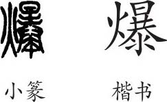 “爆”是形声兼会意字。小篆从火,暴声,暴兼表灼热之意。隶变后楷书写作“爆”。
