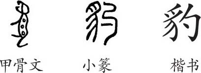 “豹”是形声字。甲骨文就像豹子的形象。小篆则变成了从豸、勺声的形声字。隶变后楷书写作“豹”。