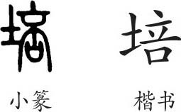 “培”是形声字。小篆从土,咅声。隶变后楷书写作“培”。