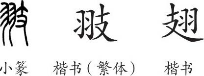 “翅”是形声兼会意字。小篆从羽,支声,支兼表支持之意。隶变后楷书写作“翅”。