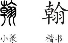 “翰”是会意兼形声字。小篆从羽,倝声。隶变后楷书写作“翰”。