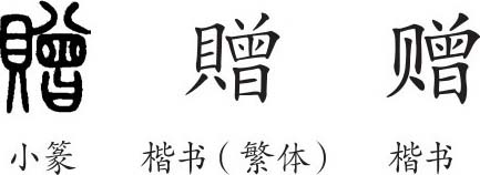 “赠”是形声字。小篆从貝,曾声。隶变后楷书写作“贈”。汉字简化后写作“赠”。