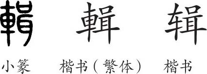 “辑”是形声字。小篆从車,咠声。隶变后楷书写作“輯”。汉字简化后写作“辑”。