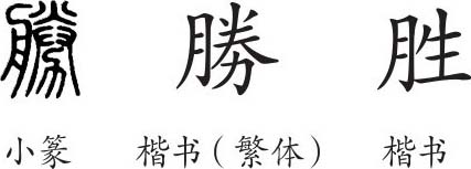“胜”是形声字。小篆从力,朕声。隶变后楷书写作“勝”。汉字简化后写作“胜”。